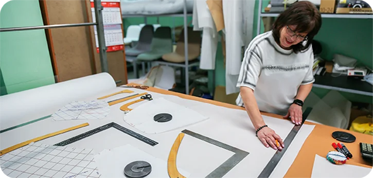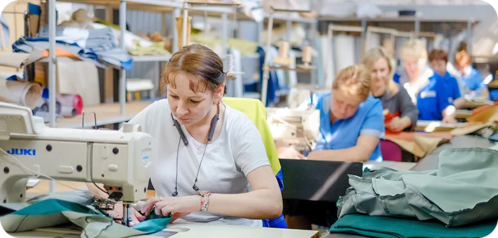 оснащено высокоскоростными импортными швейными машинами, в том числе автоматическими, которые работают со всеми видами ткани и искусственной кожи, широко представленных нашим предприятием и станком с ЧПУ для раскроя пенополиуретана.