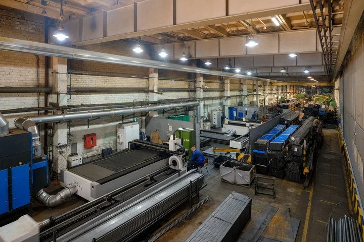 представлен установками для лазерной резки металла с ЧПУ, автоматическими трубогибочными станками с возможность объемной 3D-гибки трубы различного профиля, лентопильными автоматами, фрезерными, сверлильными и др. станками, прессами, моечными машинами, которые позволяют выполнить в полном объеме все возможные виды металлообработки и подготовки поверхности.